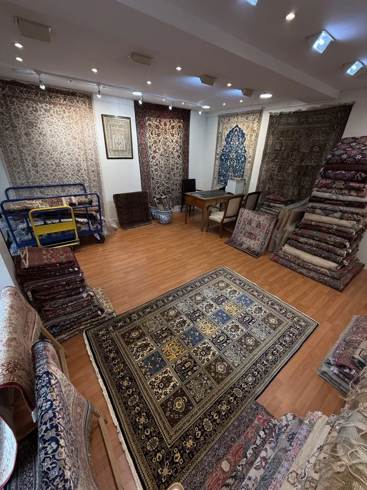 La restauration constitue également un pilier essentiel de notre activité : réparation de franges, consolidation des lisières, reconstitution de motifs ou reprise de zones usées, chaque intervention est réalisée dans le respect des techniques traditionnelles afin de prolonger la durée de vie des tapis les plus précieux.