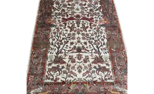 Un tapis Ghom en soie d'Iran est un tapis luxueux, finement tissé à la main, connu pour sa brillance et sa texture douce....