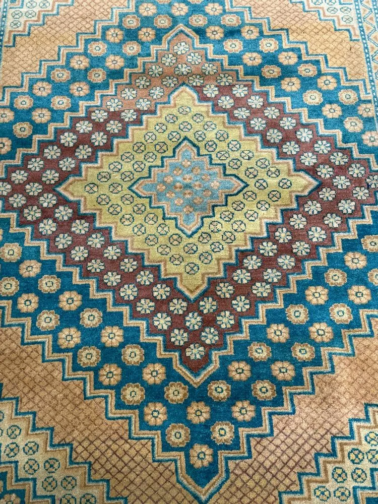 L’état général est excellent, avec des couleurs bien préservées et un velours homogène. Ses dimensions généreuses en font une pièce idéale pour un salon, une chambre, un bureau ou tout espace cherchant une touche orientale raffinée et authentique.
