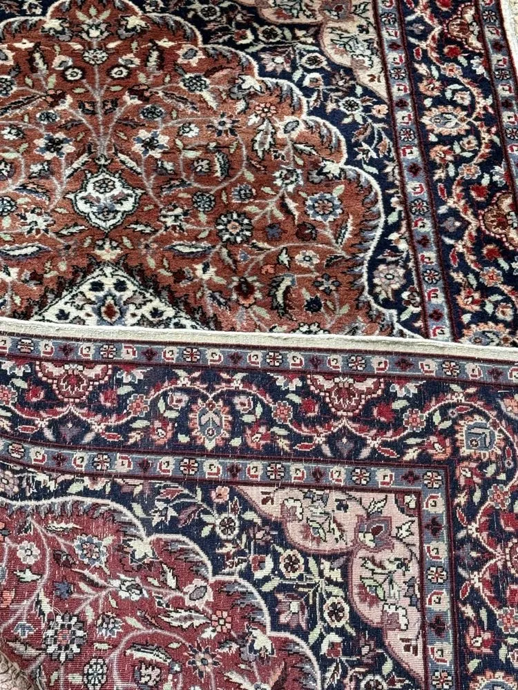 Un magnifique tapis du Penjab indien, raffiné, lumineux et intemporel, parfait pour les amateurs de tapis orientaux artisanaux et de qualité.